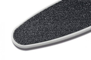 Lime cornéenne double face pour des soins des pieds doux et respectueux de la peau. Avec la surface de frottement grossière, la cornée tenace est enlevée, le côté fin est lissé. La Stiftung Warentest l'a jugée bonne en termes de maniabilité et d'efficacité.