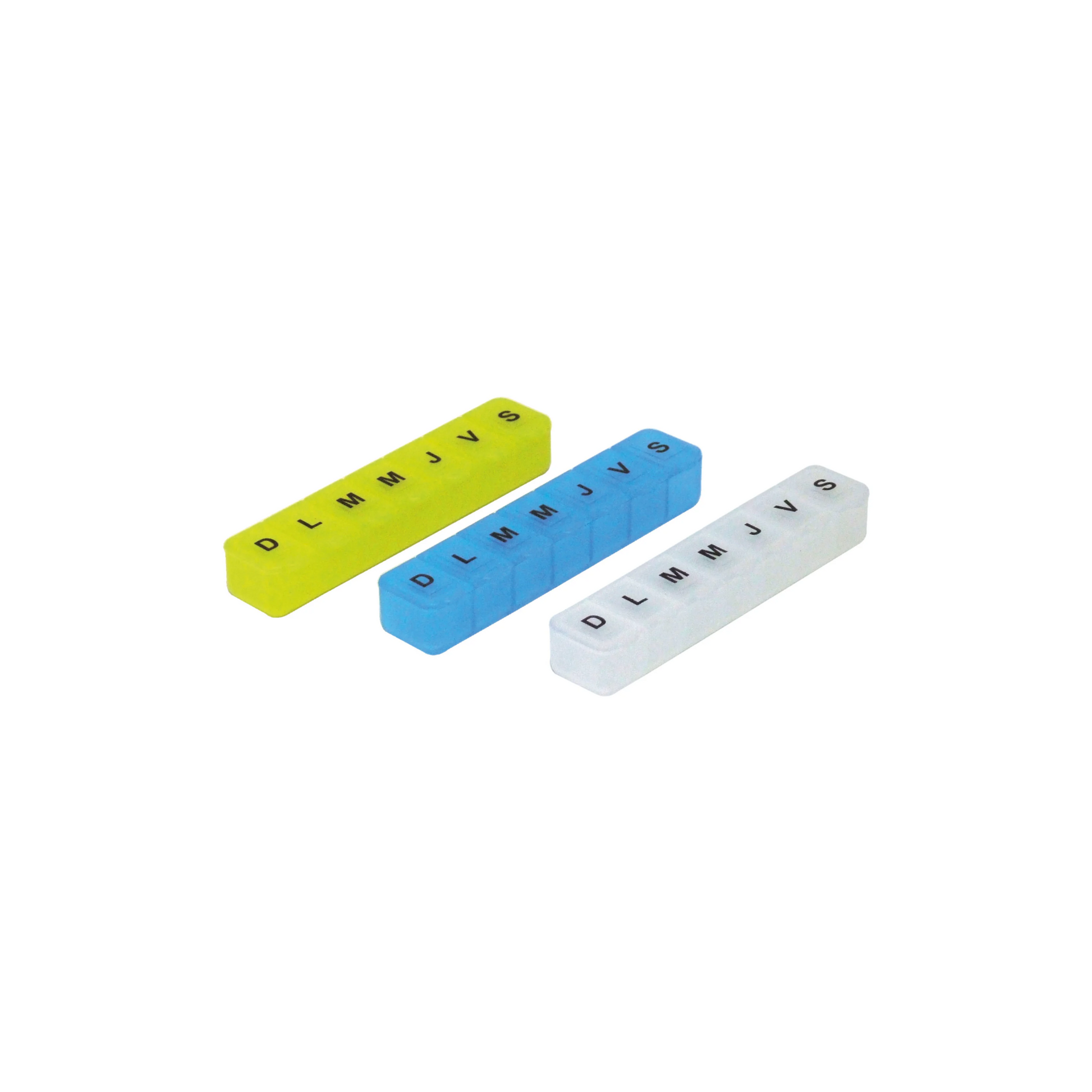 Small, medium or large weekly pill box: 7 compartments.