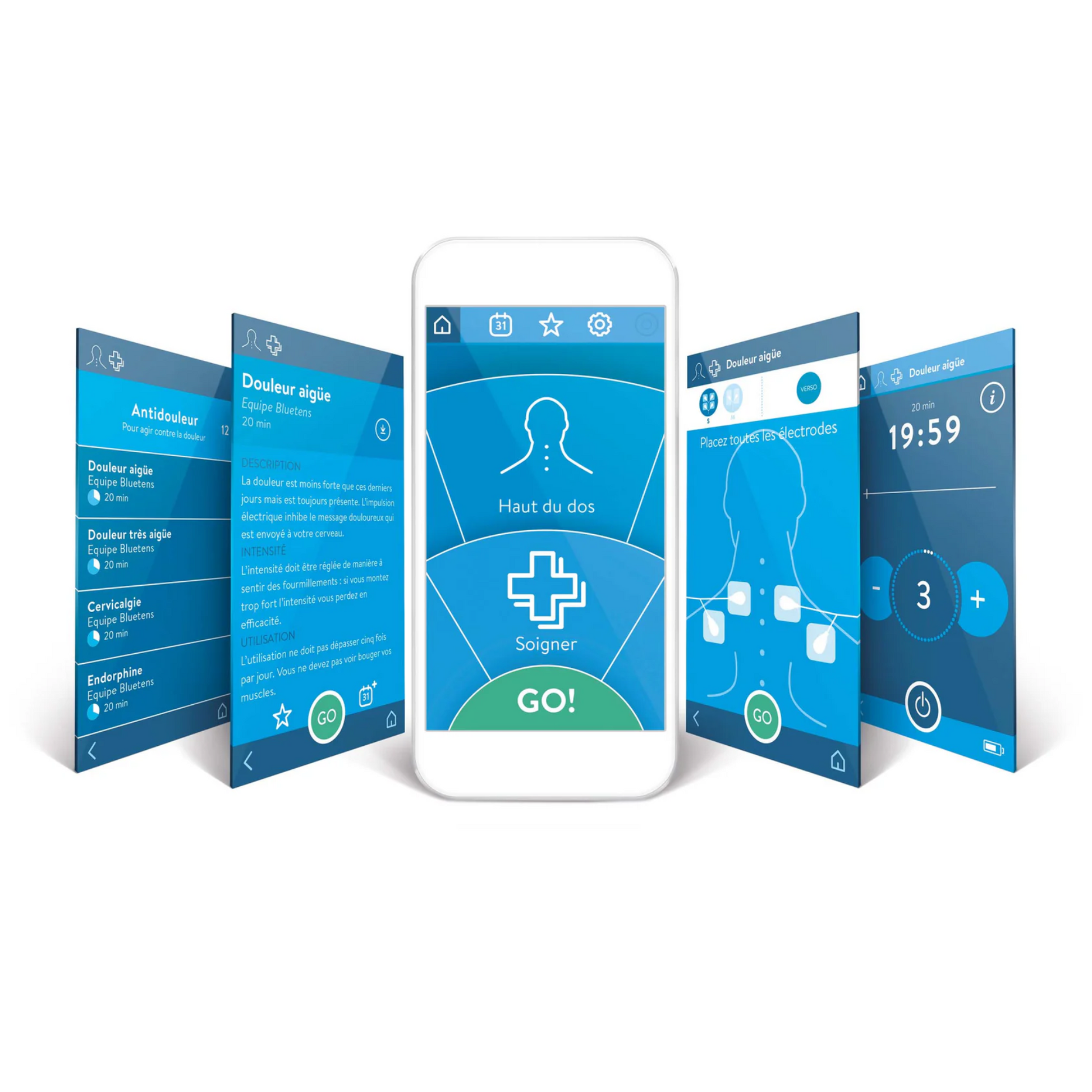 Ultra-compact et léger (seulement 25 g), le Bluetens vous accompagne partout, du cabinet de kiné à la maison. Une charge rapide d’une heure offre jusqu’à 15 jours d’utilisation.