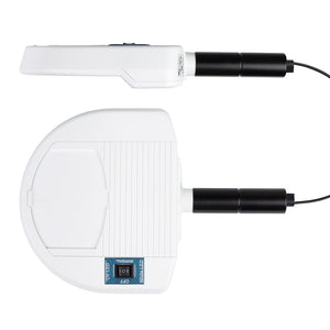 • VISTA Compacte UV FL 9W HANDLE H.F: Version portative avec tête de couleur blanche et manche de couleur noire.